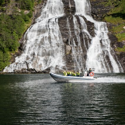 Explore the Geirangerfjord, part of the UNESCO World Heritage list, on this 1-hour fjord safari by RIB boat. You will experience some of Norway's best and most dramatic fjord scenery.