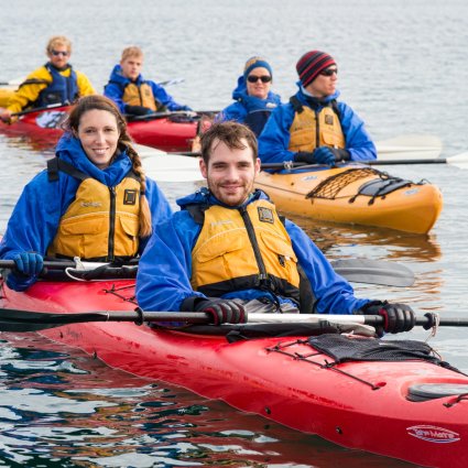 See the Art Nouveau city from the water and hear more about the devastating fire that burned much of the town to the ground in 1904. Ålesund was rebuilt in the fashionable style of the time, Art Nouveau. The excursion starts in the city center where you are kitted out with all necessary gear and get a safety briefing. You stop several times during the trip to take photos. The tour leaders are certified kayak guides with great local knowledge – assuring you a great day on the water.