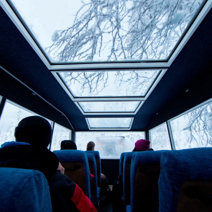 Regardless of the cold outside, sit warm and snug inside an enclosed panoramic cabin. On this excursion you will experience up close the beauty of and hopefully the Northern Lights of Finnish Lapland inside a snow tank.
