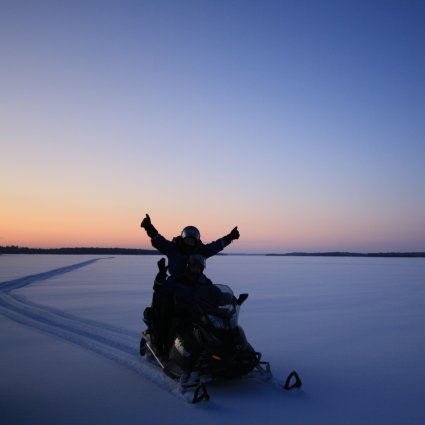 On this snowmobiling tour you will head to the Nellim surroundings in search of the Northern Lights. You will head for the open spots, where the chances of seeing the Northern Lights are the highest. The driving distance depends on the weather conditions; if the sky looks promising, you will stop and admire this beautiful show!