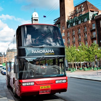 Discover the city of Copenhagen with a panorama bus. You will pass all the major attractions of Copenhagen. Enjoy the insights and the fascinating facts about Copenhagen given to you in your own language by headphones.