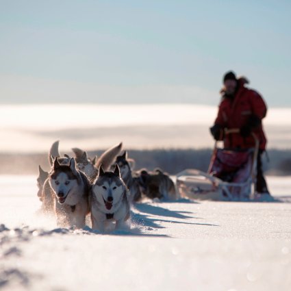 You will ride through the magical winter landscape, through snow covered forests and frozen lakes. Simply sit back and relax, take in the surroundings, and feel the dogs tremendous desire to run and pull. During the tour, there will be a stop for wilderness coffee and cake served by an open fire. On the tour you are travelling as a passenger and it is not possible to drive your own team of huskies. This activity is perfect for families travelling with children or travellers who want a calm and cozy dog sledding tour in Swedish Lapland.