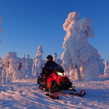 Get a taste of an environmentally sustainable way to enjoy the clean and fresh Arctic nature on an electric snowmobile. Drive silently through the beautiful snowclad forests just outside Levi in Finnish Lapland.