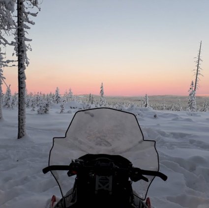 Drive your silent electric snowmobile towards the sunrise on this environmentally friendly snowmobile safari just outside Rovaniemi in Finnish Lapland.