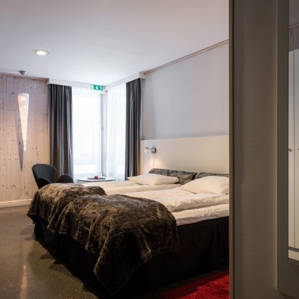 Kaamos Hotel offers comfortable and warm accommodation next to the Ice Hotel in Jukkasjärvi. The standard rooms have twin beds (two separate beds). If booking a triple room you will stay at an Arctic Chalet