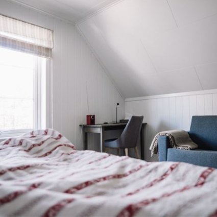 At Trasti & Trine´s lodge you will find a professional kitchen and a cosy dining room. On the upper floor there are two spacious bedrooms private bathroom, located right outside the room. The area outside the rooms, consisting of a little tea kitchen and a balcony, may be shared with other guests staying in the other room. An organic and home made breakfast is included.
