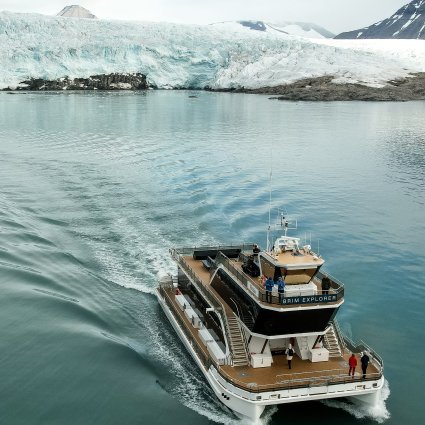 Visit the arctic nature of Svalbard on the hybrid-electric catamaran MS Bard. It will take you within 7 hours through magnificent landscapes, to Billefjorden and the glacier Nordenskiöldbreen.