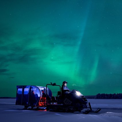Start your adventure from Apukka Resort, the Snowtrain will take you through the beautiful landscape deep into the wilderness. The focus is set on the Northern Lights, the most spectacular light show in the northern hemisphere.