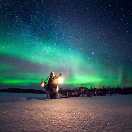 The safari takes place at a local reindeer farm close to Rovaniemi, but far away that the city light will not disturb. At the farm you will meet real reindeer herders who share their experiences of life hand-in-hand with nature.
