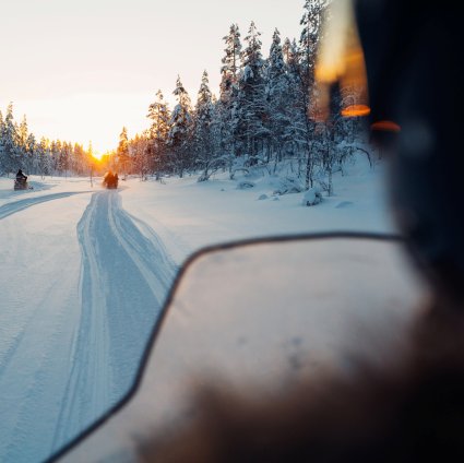 Enjoy a thrilling snowmobile adventure in the arctic forest. The best way to see the landscape in Finnish Lapland is by taking off with a snowmobile. You will be picked up from Kakslauttanen, provided with a thermal outfit and with instructions on how to steer the snowmobile.
