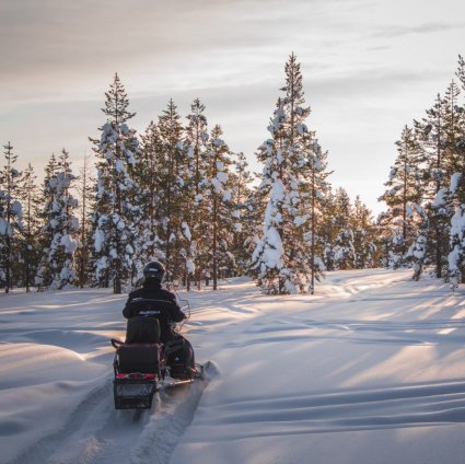 The electric snowmobile, eSled, is very easy to drive for beginners due to its special electric drive. Driving on the frozen lake area on the snowy routes is an easy and comfortable way to start enjoying snowmobiling in peace. During the safari you will make a few stops on the way and enjoy the beautiful lake view around you. The guide will give you information about Lappish nature and lake Lehtojärvi area.