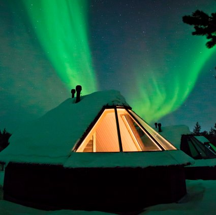 If booking our Tour Category SILVER you have the option to upgrade your Wilderness Room to stay in an Aurora Cabin at Wilderness Hotel Muotka for two nights.