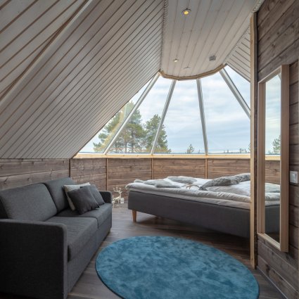 If booking our Tour Category SILVER you have the option to upgrade your Wilderness Room to stay in an Aurora Cabin at Wilderness Hotel Inari for two nights.