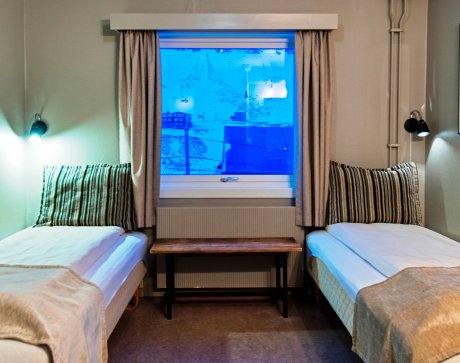The standard rooms are simple, but with practical furnishings and views towards the wild Arctic landscape. There are shared bathroom facilities: eight bathrooms located in the corridors. A stay at Coal Miners’ Cabins includes a delicious breakfast buffet. Here you can get a great start on an exciting day in the Polar wilderness. In the evening, you can let your experiences sink in while you enjoy a beer in the bar and watch the northern lights flitter across the heavens or cuddle up in an armchair with a good book, whilst you plan the following day’s adventures.